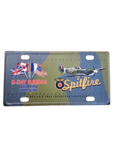 Cette plaque métal Spitfire avion rend hommage à l’un des avions les plus emblématiques de la Royal Air Force. Utilisé pendant la Seconde Guerre mondiale, le Spitfire incarne la résistance aérienne alliée. Ce modèle de plaque met en scène l’avion en vol sur fond de camouflage, avec les drapeaux britanniques, américains, français et canadiens, et les inscriptions “D-DAY 6.6.1944 – OVERLORD – NORMANDY”.